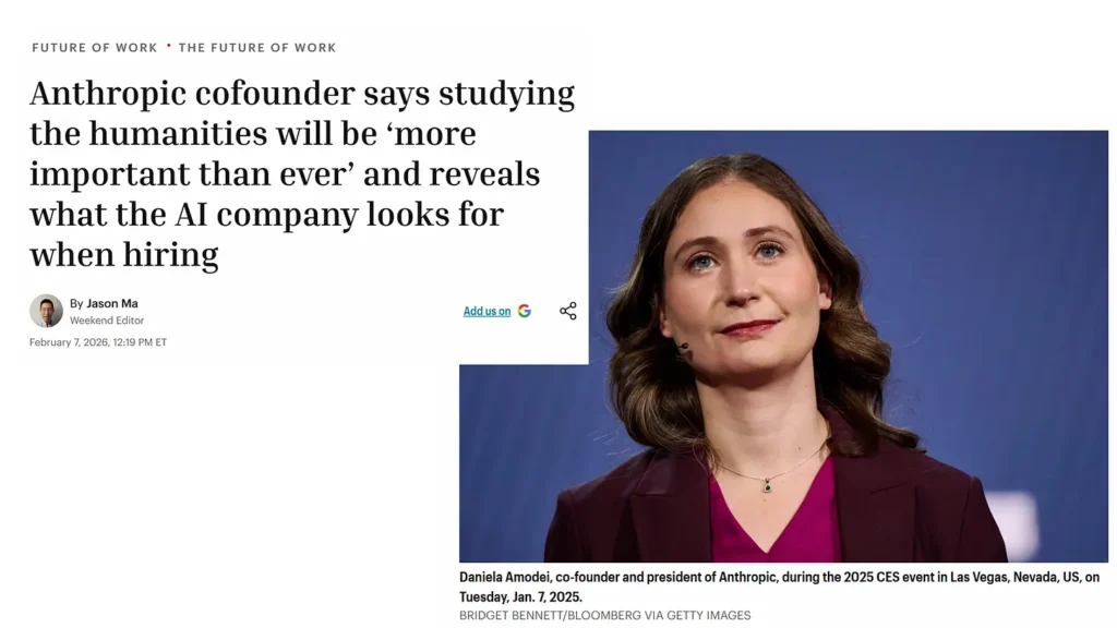 Fortune’da bir röportaja denk geldim. Anthropic’in kurucu ortağı Daniela Amodei diyor ki: “Beşeri bilimleri çalışmanın her zamankinden daha önemli olacağını düşünüyorum. Modeller STEM konularında zaten çok iyi. Ama eleştirel düşünme, insanlarla etkileşim kurabilmek — bunlar gelecekte daha az değil, daha çok önem kazanacak.”